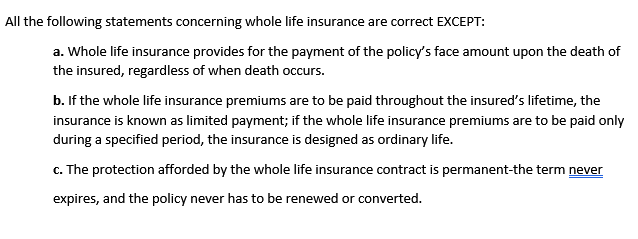 Solved All The Following Statements Concerning Whole Life Chegg Com